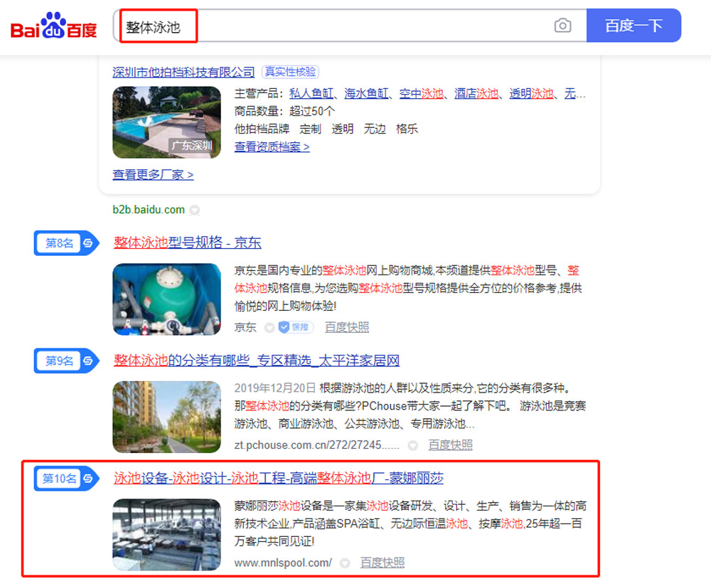 廣州蒙娜麗莎泳池設(shè)備有限公司營銷型網(wǎng)站SEO優(yōu)化案例展示