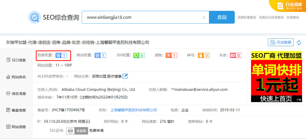 上海馨靚甲醫藥科技有限公司營銷型網站SEO優化案例